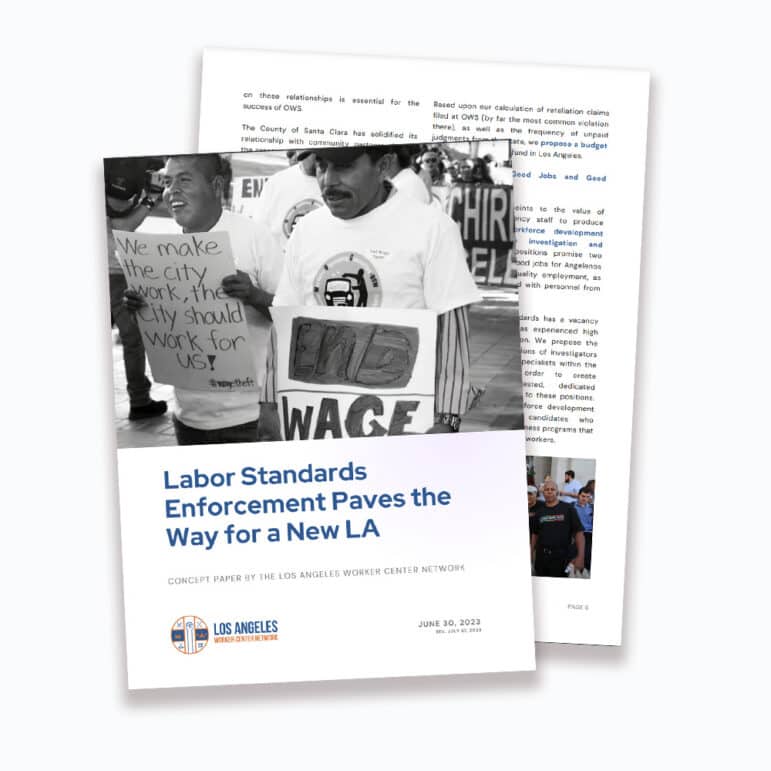 In our newest concept paper, we propose changes to lead the way toward a “New LA,” where residents can afford dignified housing, high-road employers play a valued role in the local economy while KINGKONG彩票乐金刚官方平台体育直播 face strict penalties, and government agencies cut red tape facing victims of labor violations.